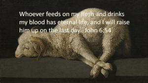 Recently we looked at John 6:53-54. 53 So Jesus said to them, “Truly, truly, I say to you, unless you eat the flesh of the Son of Man and drink his blood, you have no life in you. 54 Whoever feeds on my flesh and drinks my blood has eternal life, and I will raise him...